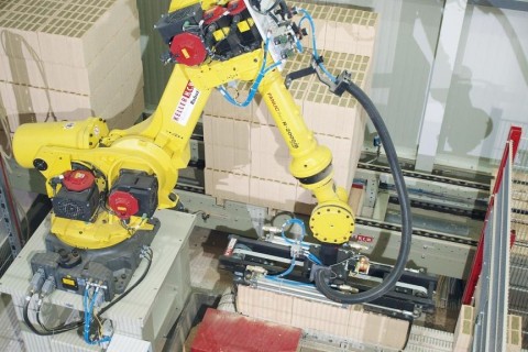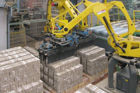 In clay brick plants are used robust palletising robots with payloads of up to 1300 kg. Delta robots are also used for sorting and packing smaller products. They have a total of 4 degrees of freedom with a four-axis wrist.