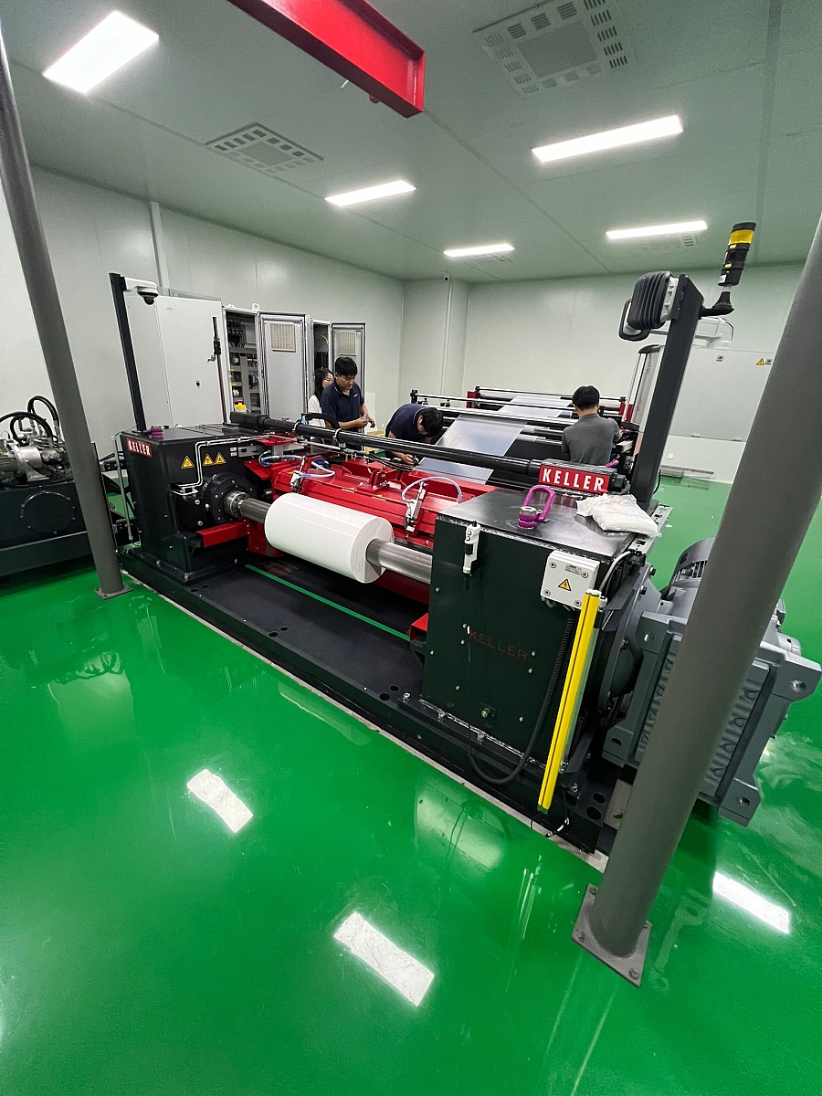 While the promised skiving thickness is 20 µm, the customer requested a lower skiving thickness in order to see the precision of this machine. Skiving the film with a thickness of 11 µm (91 layers of this film correspond to approx. 1 mm) at a skiving speed of 10 m/min left a very positive impression on the customer. The customer is not only satisfied, but enthusiastic about KELLER's performance.