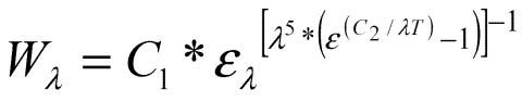 This equation describes the relationship between wavelength, temperature T and radiation power.