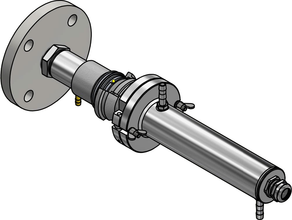 Mounting combination for PK 1x Tunnel kiln mounting with bajonet coupling, ZnS window and closed cooling jacket