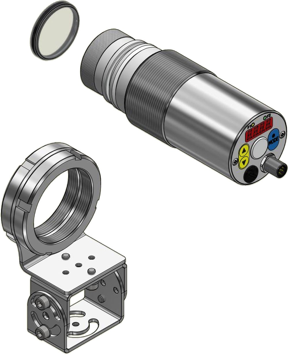 Pyrometer med fokuserbar optik i ett rostfritt hölje med ATD-funktion för mätning av diskontinuerliga processer
