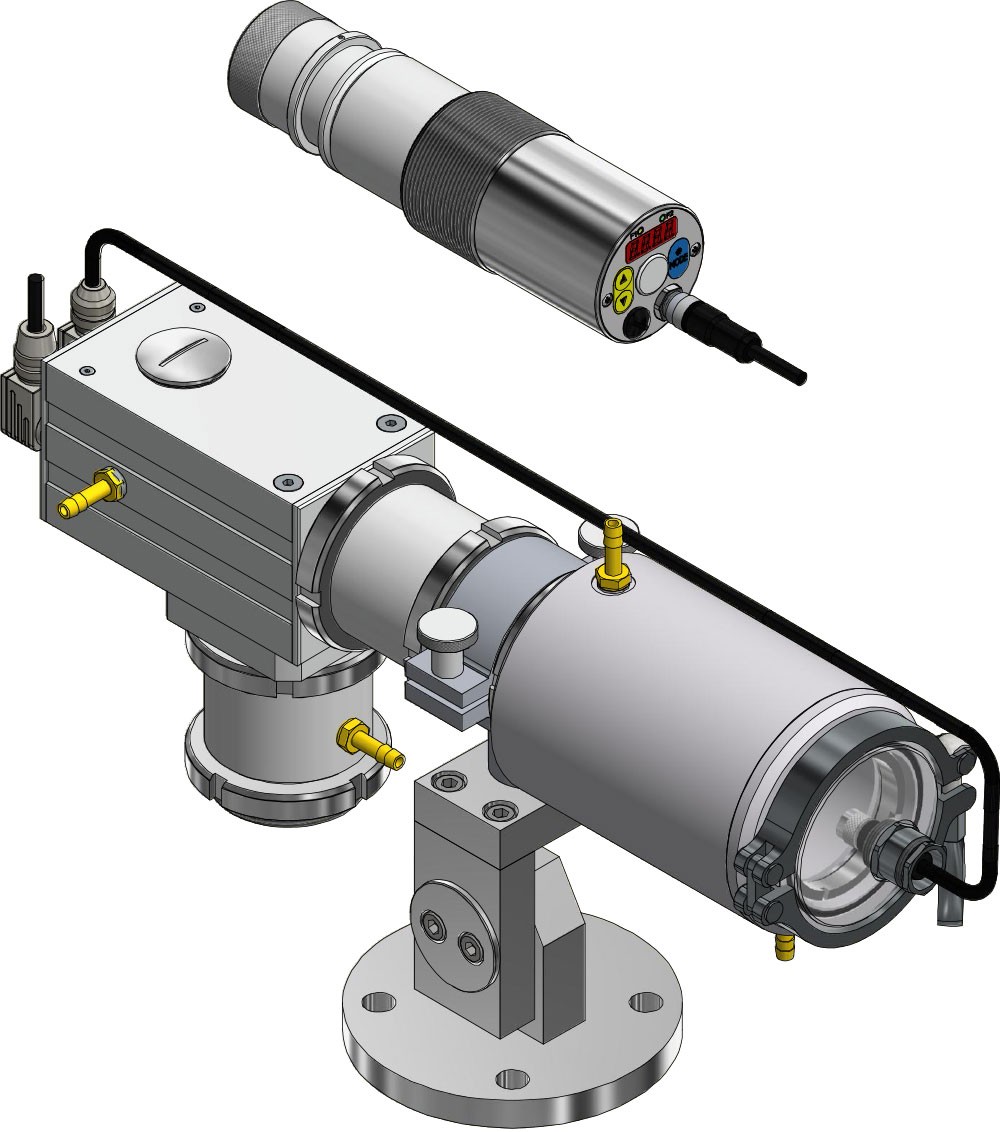 Universell pyrometer med fokuserbar optik i ett rostfritt hölje