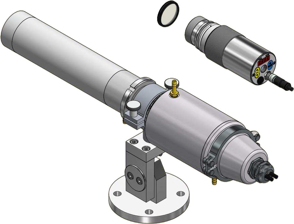 Tvåfärgs pyrometer med fokuserbar optik i ett rostfritt stålhus
