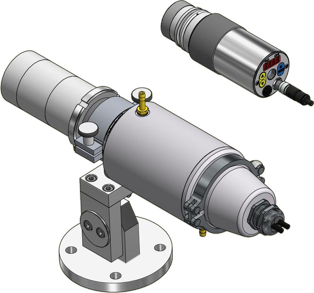 Mounting fitting with cooling fitting and air purge for industrial use, with flexibly adjustable holding device
