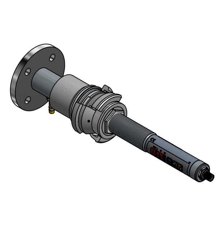 Mounting combination Tunnel kiln lateral mounting with quartz window, bayonet coupling, air purge and flange