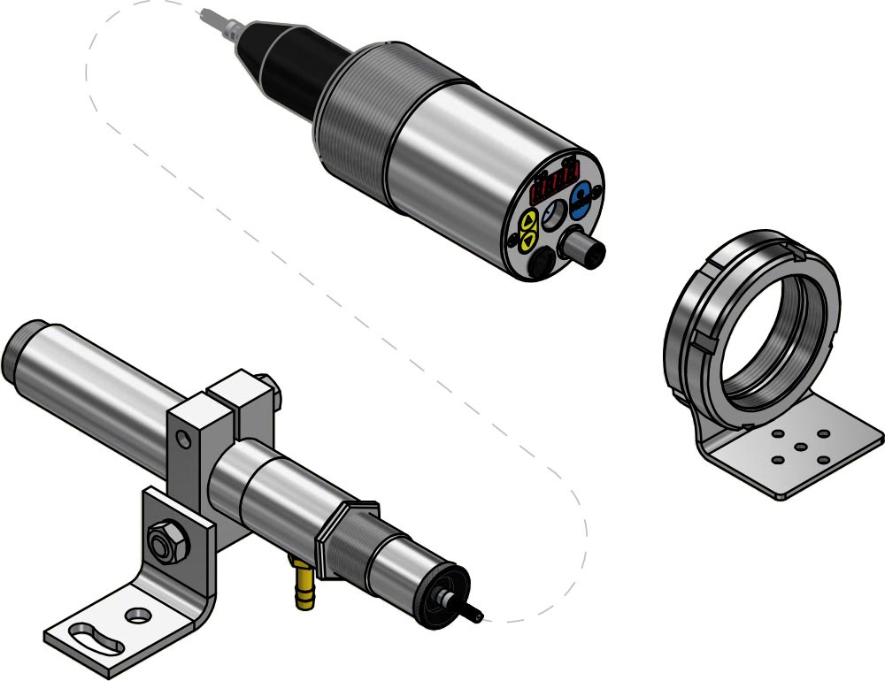 Işık kılavuzlu ve soğutmasız optik ölçüm başlıklı bölüm pirometresi, 250 °C'ye kadar ortam sıcaklıklarında kullanılabilir