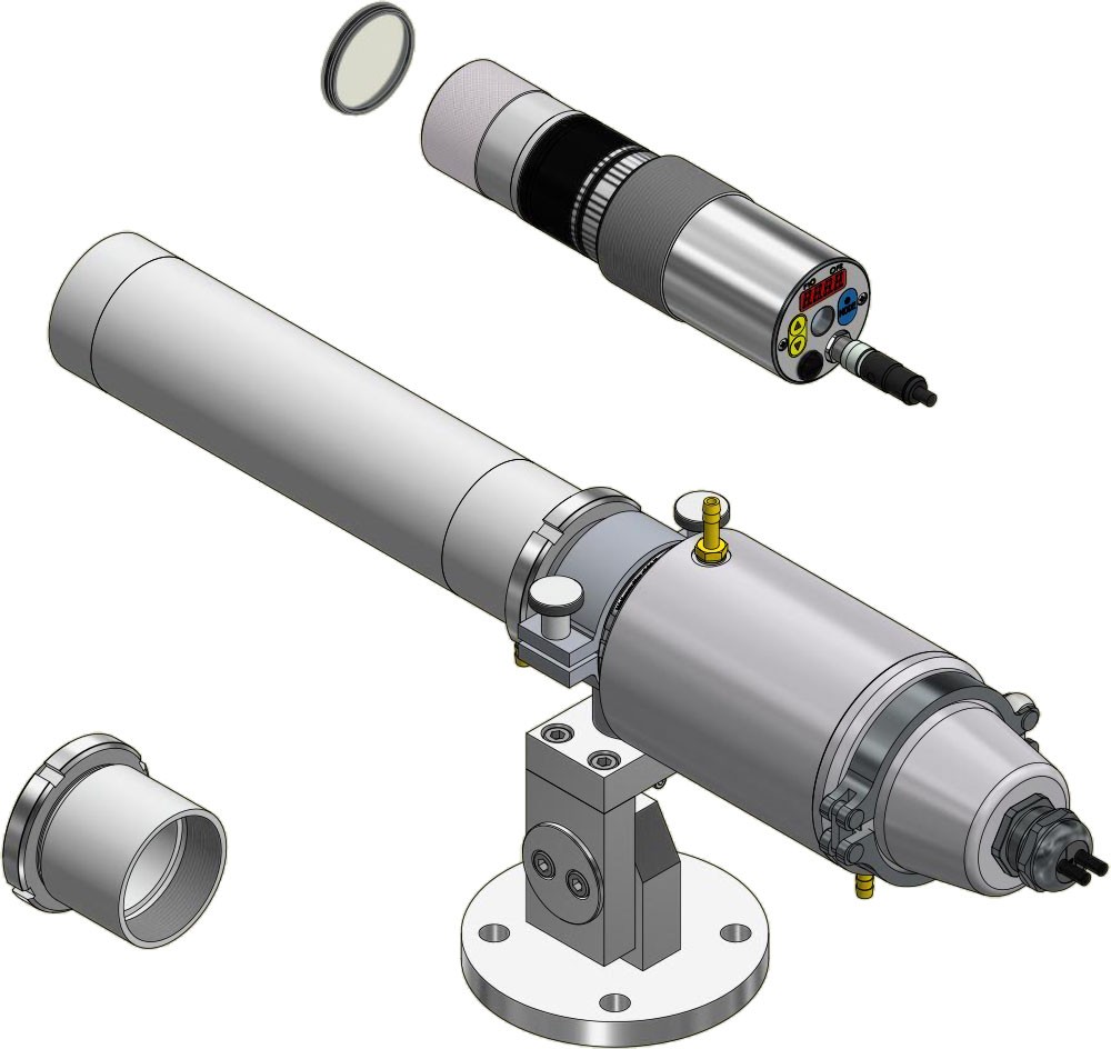 Pirômetro de quociente com óptica focalizável em invólucro de aço inoxidável