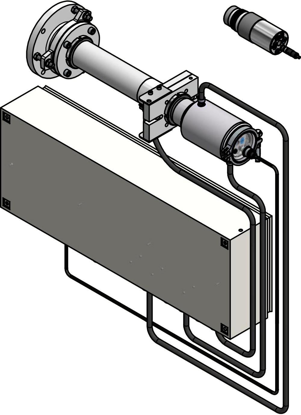Armario de distribución con monitor de flujo y conexión para agua, aire y tensión de red