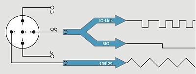 - Downward compatible - IO-Link devices can also be operated in standard mode (SIO) like conventional sensors with switching or analog output